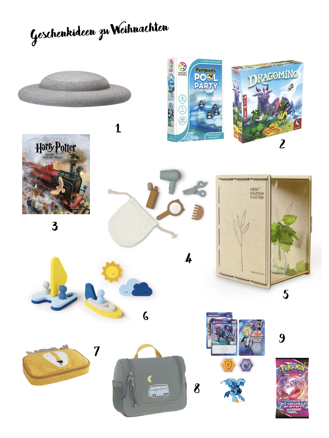 - Ohne Bücher und Gesellschaftsspielen geht es bei uns nicht. Dieses Jahr haben wir uns für das Dragomino, eine Art Dominospiel, sowie für ein weiteres Smart Games Penguins Pool Party entschieden. Diese sind auch sehr praktisch, da sie von einem Kind allein bespielt werden können oder auch wir als Erwachsene gerne mal unsere Hirnzellen damit trainieren.