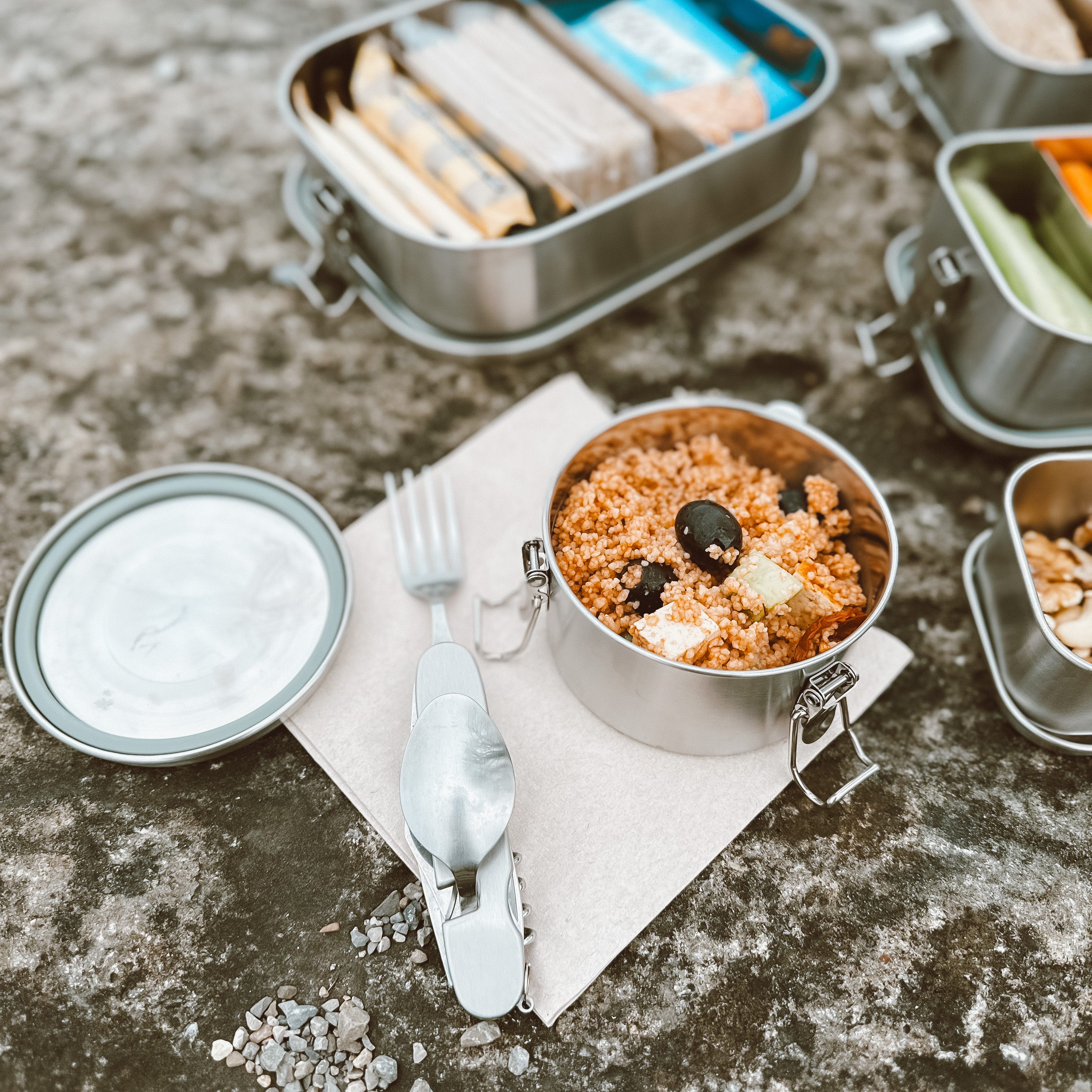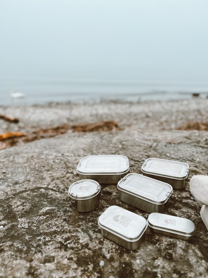 3. Wir lieben unsere Edelstahlboxen von Wert & Voll! Zum einen wäre da dieser auslaufsicherer Behälter, der ideal für uns ist, um z.B. unsere Salate (Couscoussalat, Nudelsalat, usw.) darin zu transportieren. Da läuft garantiert nichts aus! Zudem sind die Boxen aus schadstofffreiem Edelstahl, hochwertig und langlebig, spülmaschinenfest, recyclebar, stapelbar, geeignet zum Einfrieren sowie für Backofen und Steamer (ohne Deckel).
